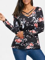 • Criss Cross Floral Long Sleeve Top - Black-1