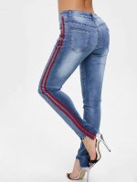 • Ripped Raw Hem Side Stripe Jeans - Denim Blue-7